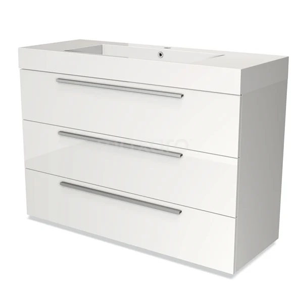 Modulo Waschtische | 120 cm Hochglanz Weiß Flach front Mineralguss 3 Schubladen