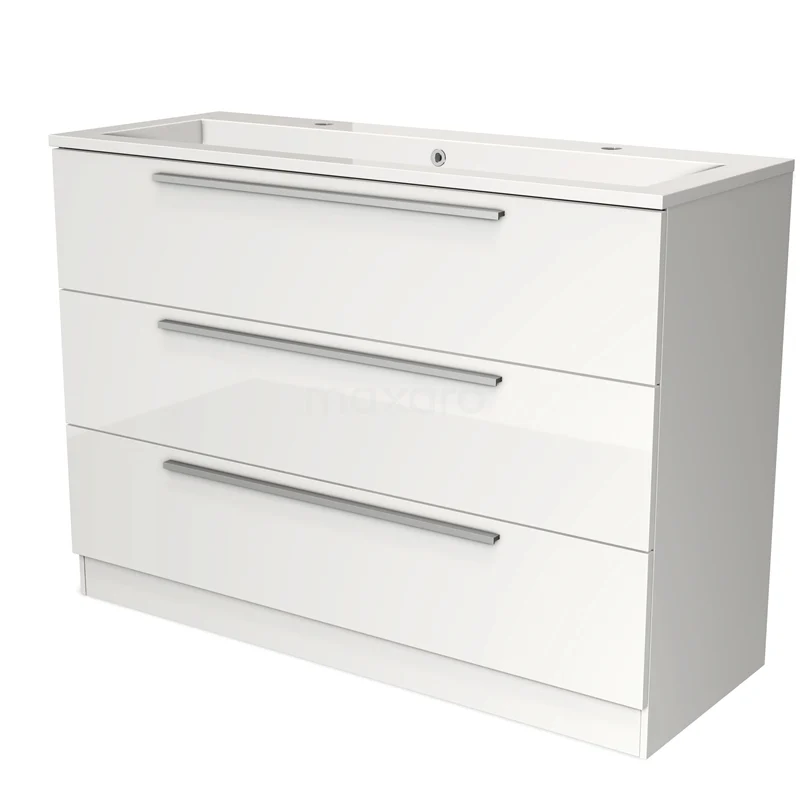 Modulo Waschtische | 120 cm Hochglanz Weiß Flach front Mineralguss 3 stehende Schubladen