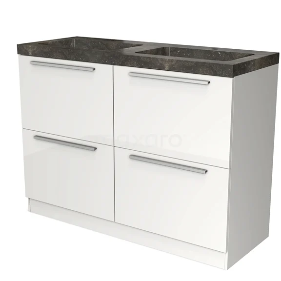 Modulo Waschtische | 120 cm Hochglanz Weiß Flach front Naturstein 4 hohe Schubladen stehend