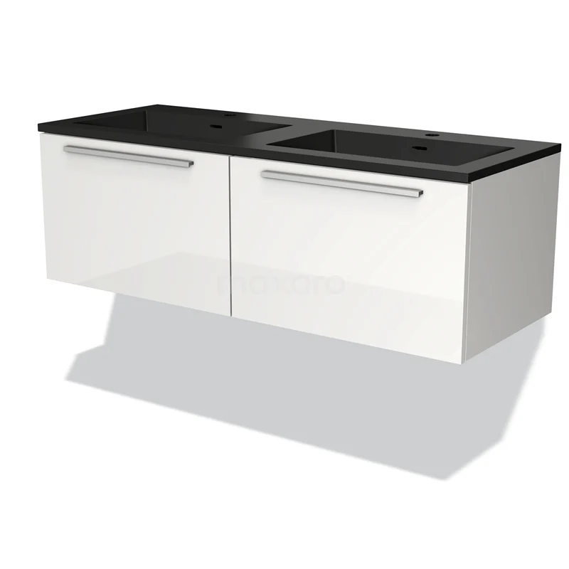 Modulo Waschtische | 120 cm Hochglanz Weiß Flach front Quarz 2 nebeneinanderliegende Schubladen