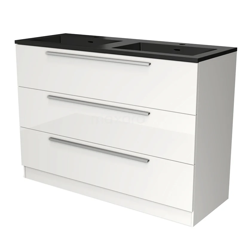 Modulo Waschtische | 120 cm Hochglanz Weiß Flach front Quarz 3 stehende Schubladen