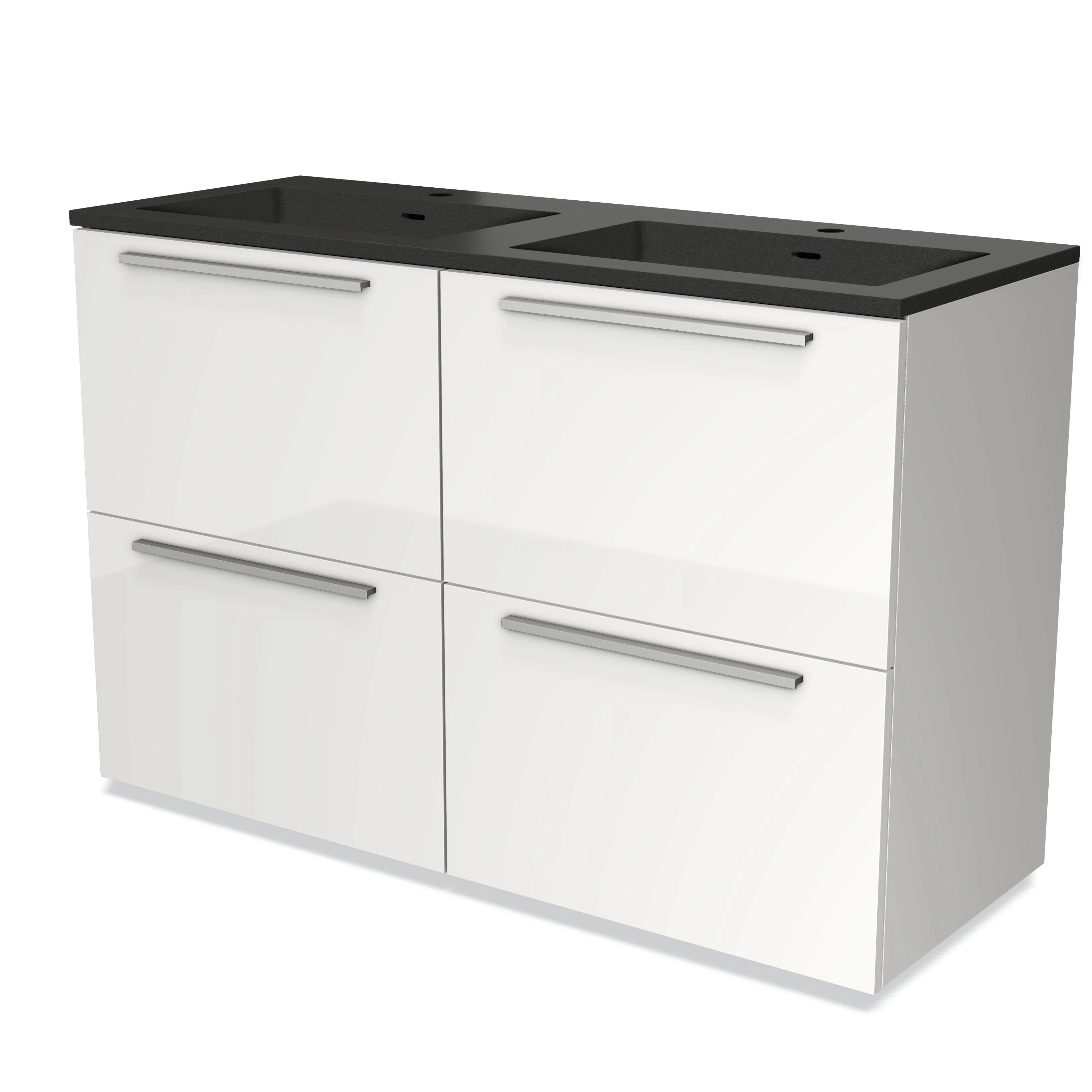Modulo Waschtische | 120 cm Hochglanz Weiß Flach front Quarz 4 hohe Schubladen