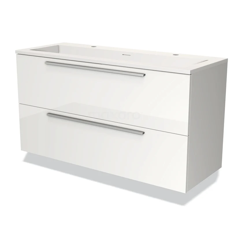 Modulo Waschtische | 120 cm Hochglanz Weiß Flach front Solid Surface 2 übereinanderliegende Schubladen