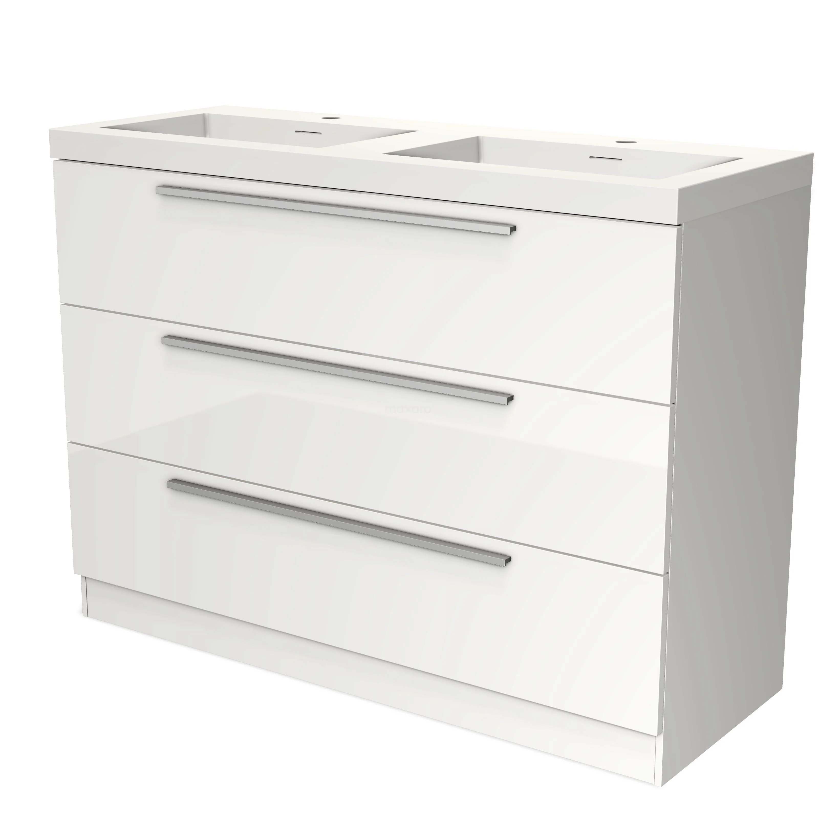 Modulo Waschtische | 120 cm Hochglanz Weiß Flach front Solid Surface 3 stehende Schubladen