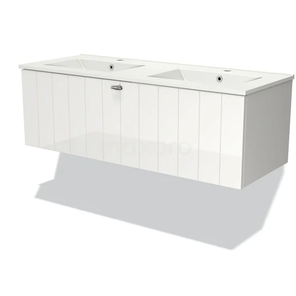 Modulo Waschtische | 120 cm Hochglanz Weiß Lamelle front Keramik 1 Schublade