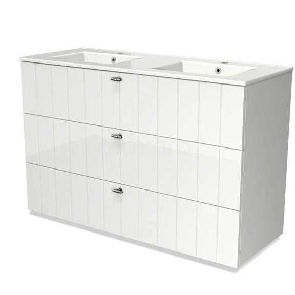 Modulo Waschtische | 120 cm Hochglanz Weiß Lamelle front Keramik 3 Schubladen