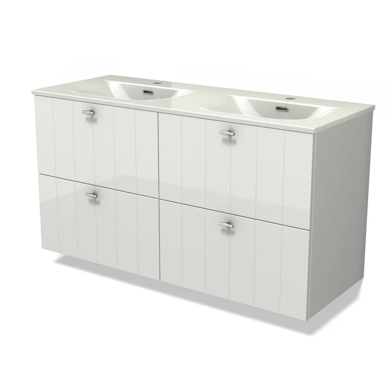 Modulo Waschtische | 120 cm Hochglanz Weiß Lamelle front Keramik 4 Schubladen