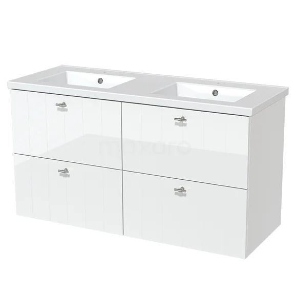 Modulo Waschtische | 120 cm Hochglanz Weiß Lamelle front Keramik 4 Schubladen