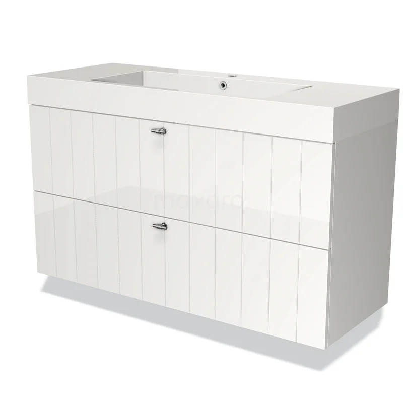 Modulo Waschtische | 120 cm Hochglanz Weiß Lamelle front Mineralguss 2 übereinanderliegende Schubladen