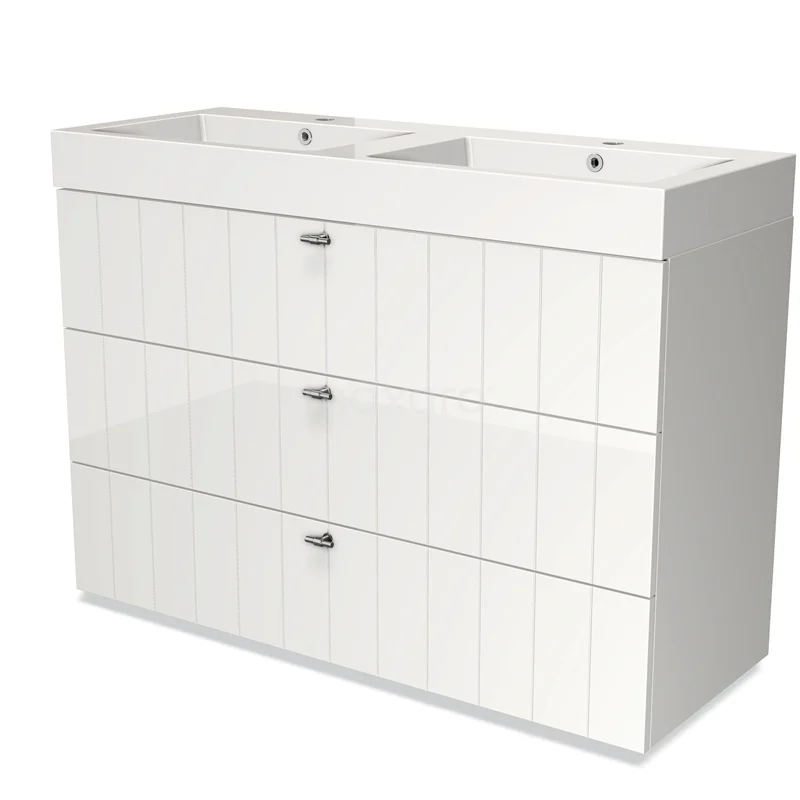 Modulo Waschtische | 120 cm Hochglanz Weiß Lamelle front Mineralguss 3 Schubladen