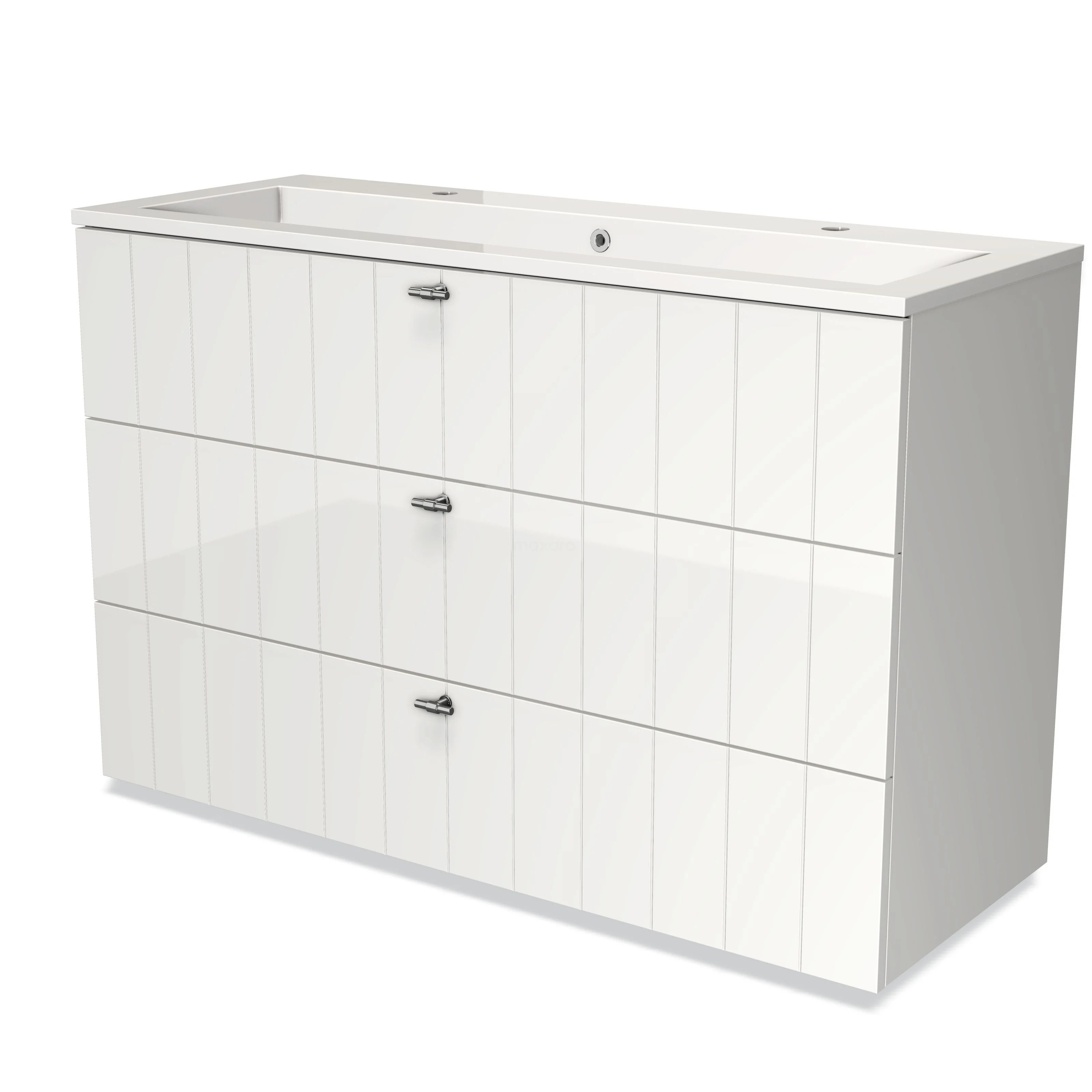 Modulo Waschtische | 120 cm Hochglanz Weiß Lamelle front Mineralguss 3 Schubladen