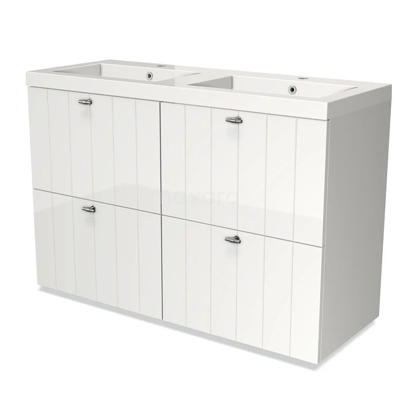 Modulo Waschtische | 120 cm Hochglanz Weiß Lamelle front Mineralguss 4 hohe Schubladen