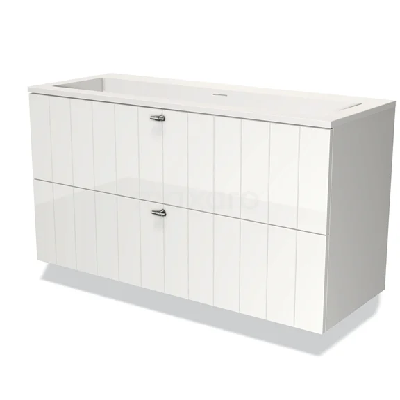 Modulo Waschtische | 120 cm Hochglanz Weiß Lamelle front Solid Surface 2 übereinanderliegende Schubladen