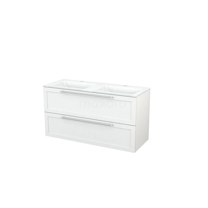 Modulo+ Waschtische | 120 cm Hochglanz Weiß Rahmen front Glas 2 übereinanderliegende Schubladen