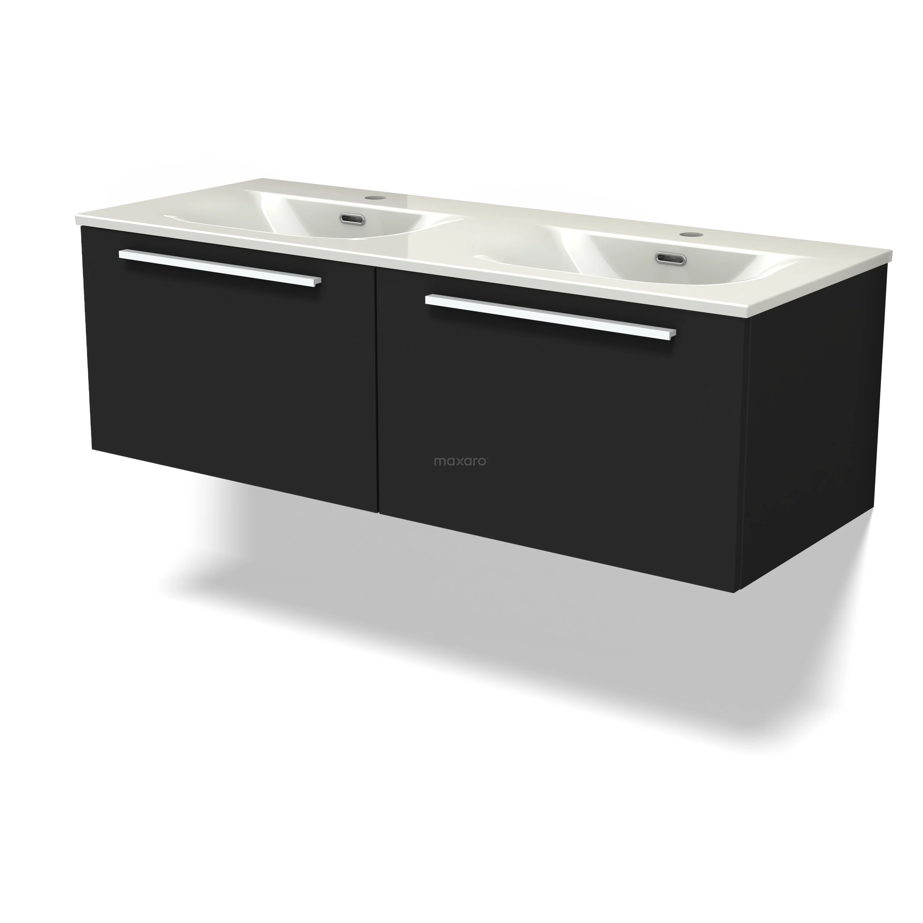 Modulo Waschtische | 120 cm Matt Schwarz Flach front Keramik 2 nebeneinanderliegende Schubladen