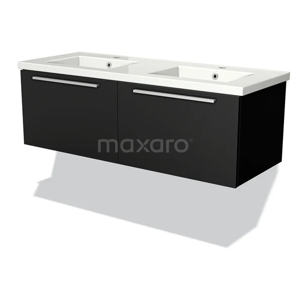 Modulo Waschtische | 120 cm Matt Schwarz Flach front Keramik 2 nebeneinanderliegende Schubladen