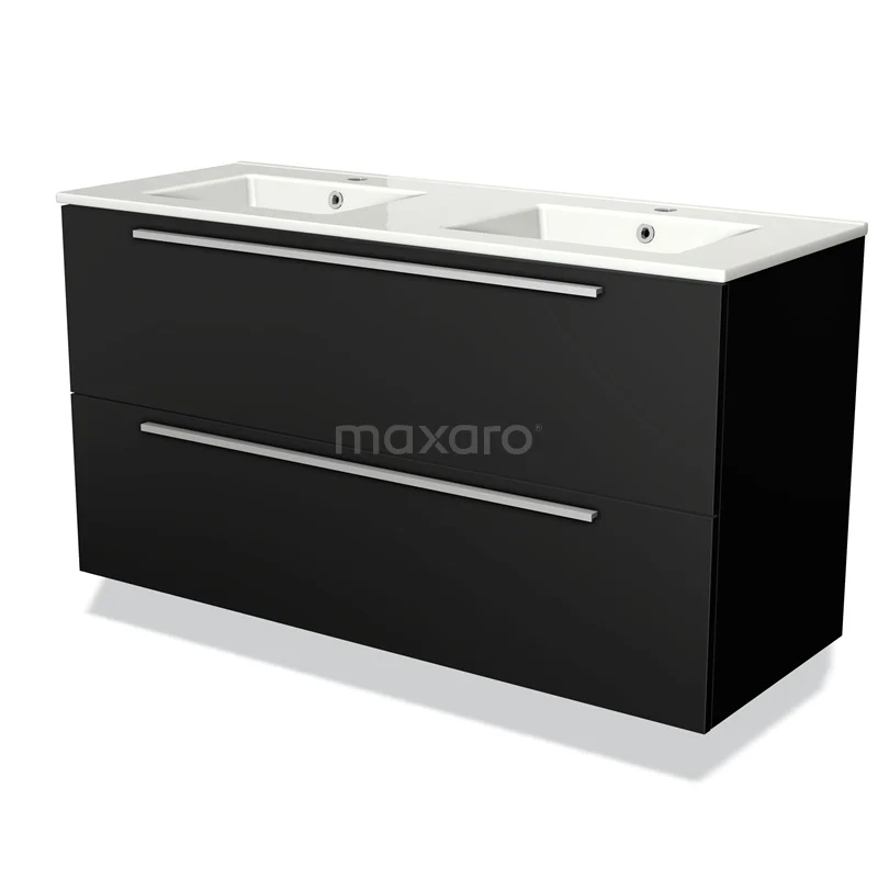Modulo Waschtische | 120 cm Matt Schwarz Flach front Keramik 2 übereinanderliegende Schubladen