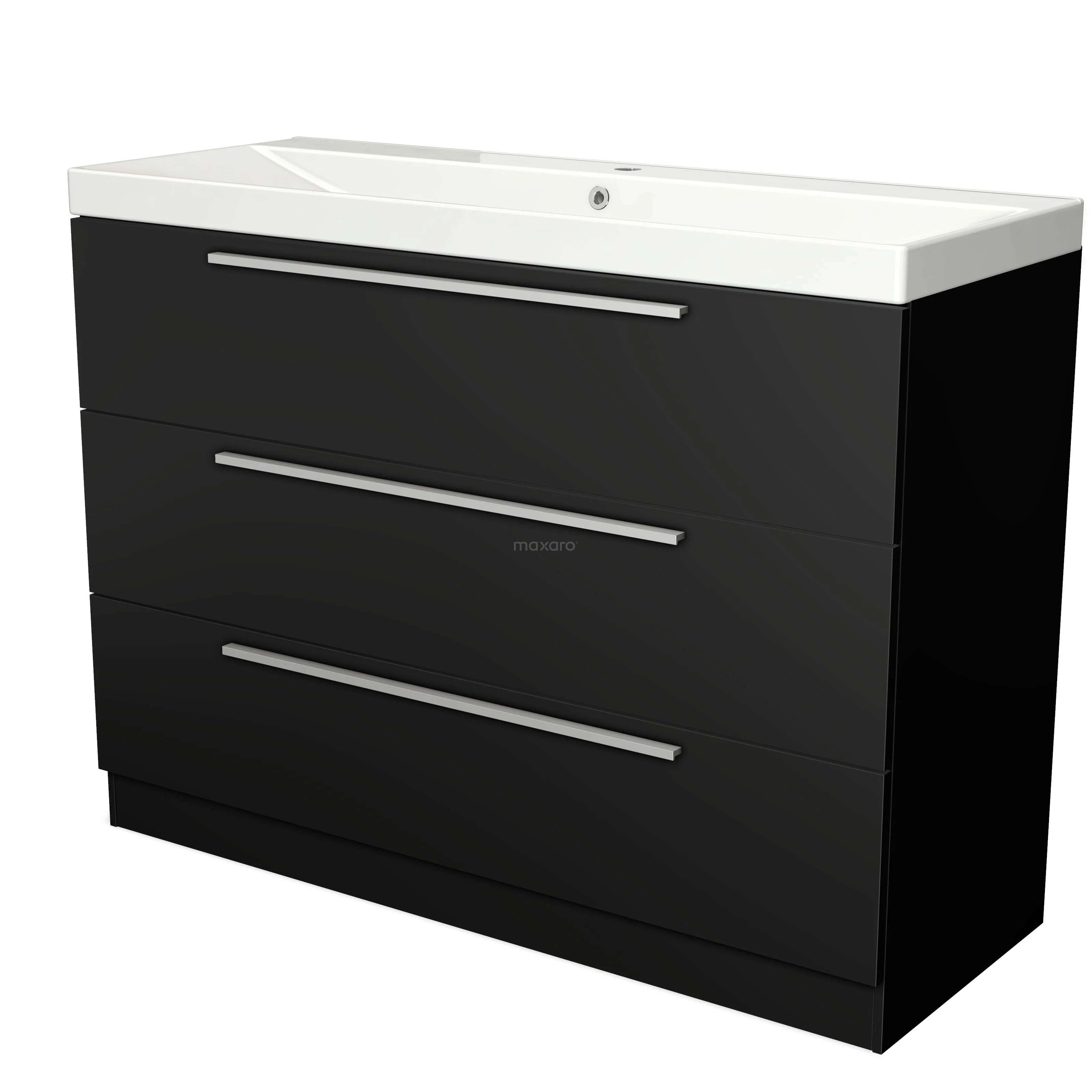 Modulo Waschtische | 120 cm Matt Schwarz Flach front Keramik 3 stehende Schubladen