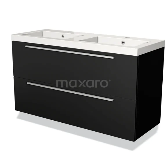 Modulo Waschtische | 120 cm Matt Schwarz Flach front Mineralguss 2 übereinanderliegende Schubladen