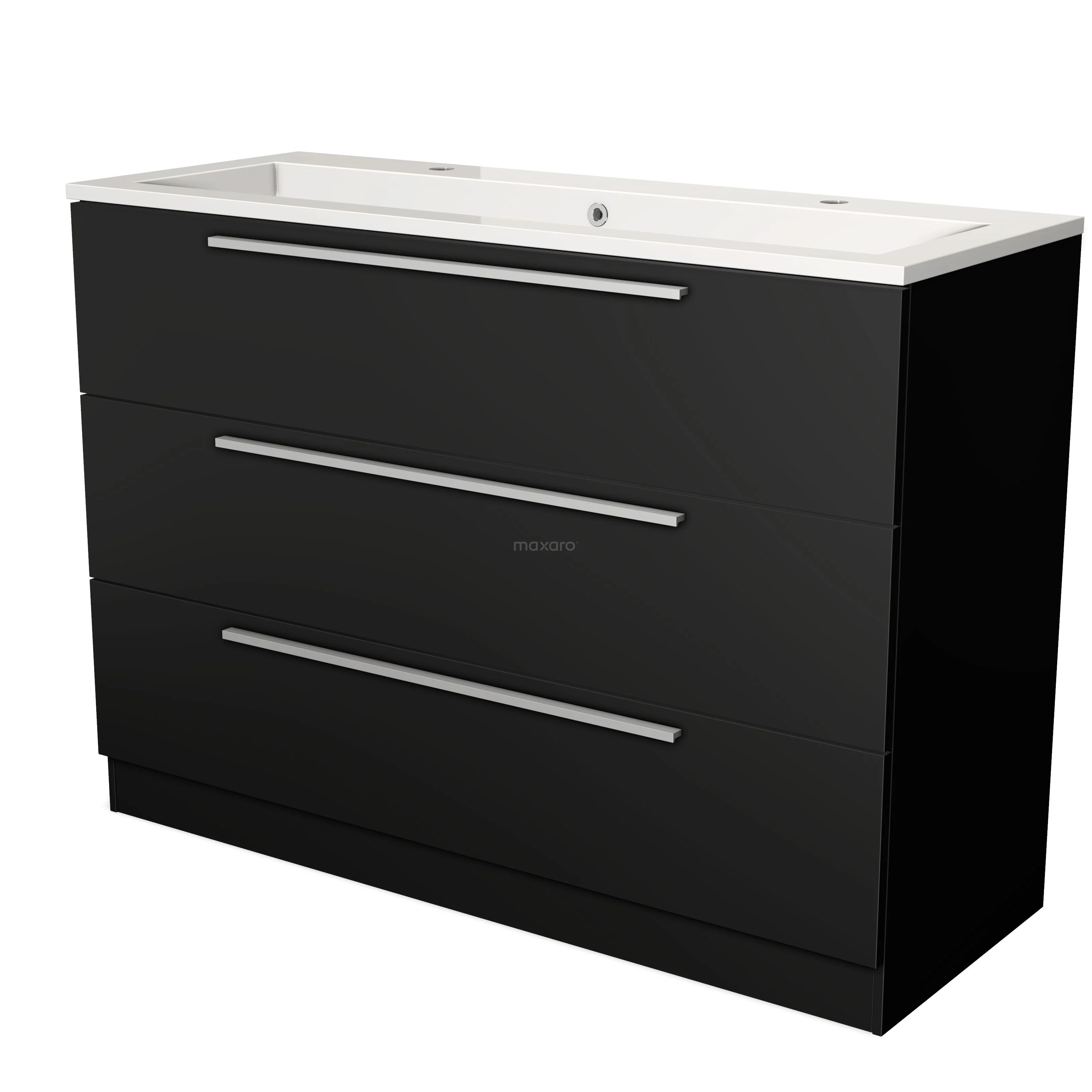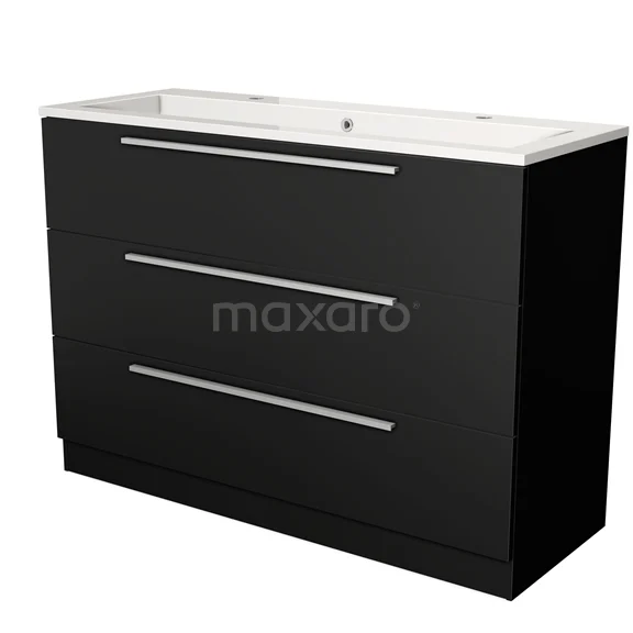 Modulo Waschtische | 120 cm Matt Schwarz Flach front Mineralguss 3 stehende Schubladen