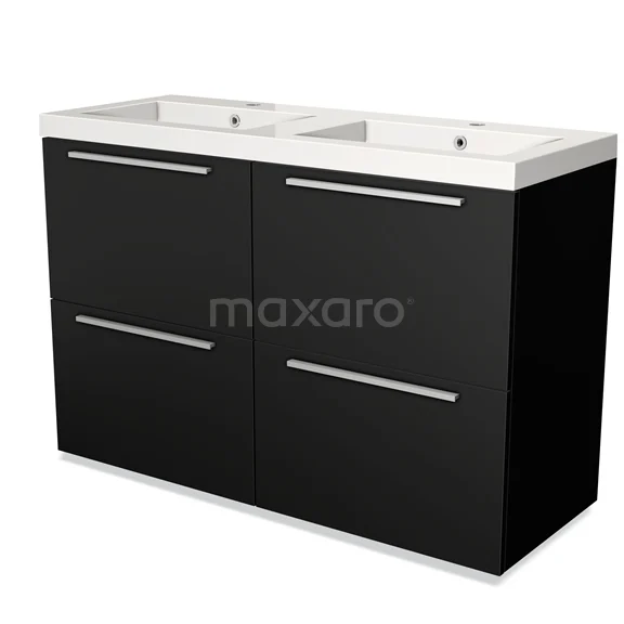 Modulo Waschtische | 120 cm Matt Schwarz Flach front Mineralguss 4 hohe Schubladen
