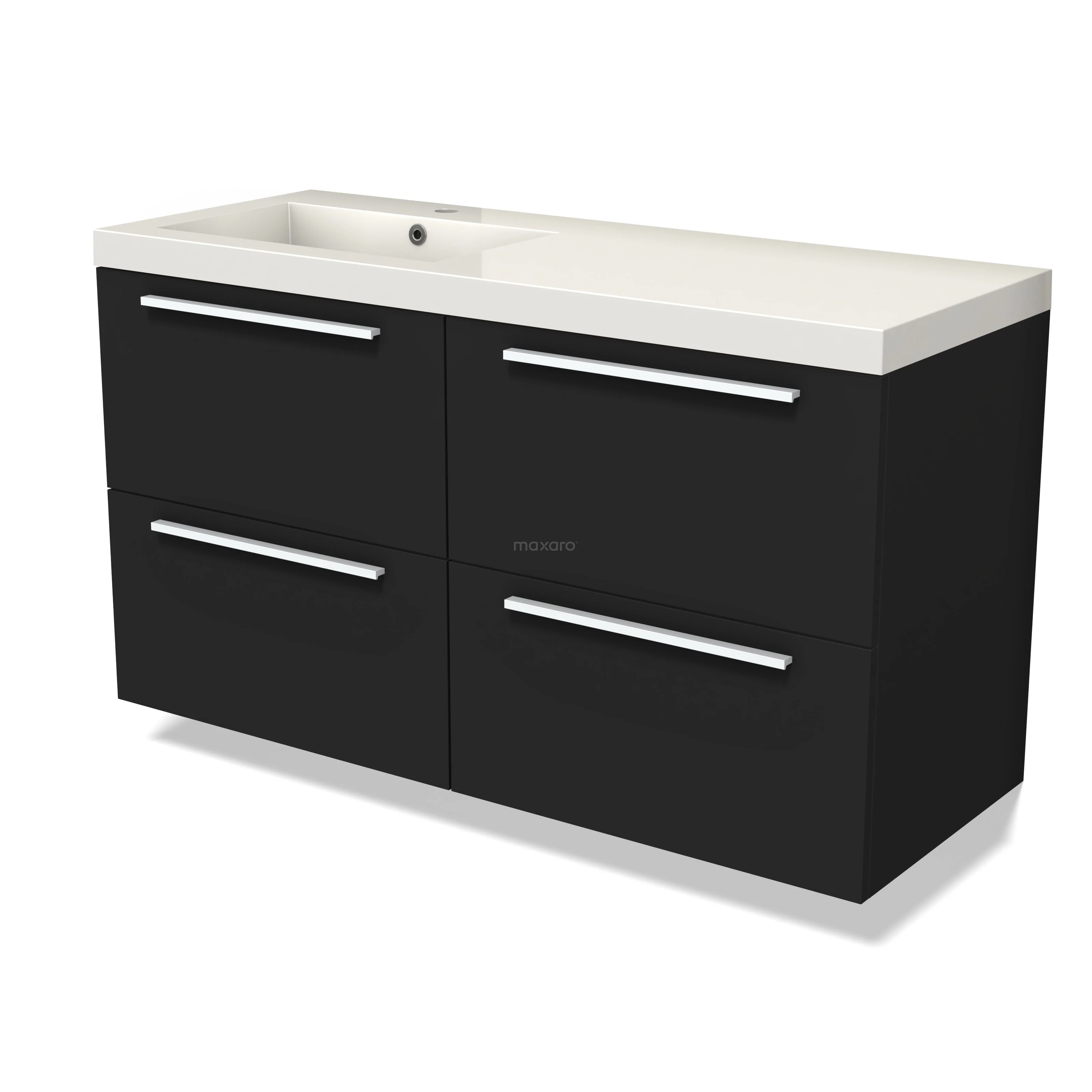 Modulo Waschtische | 120 cm Matt Schwarz Flach front Mineralguss 4 Schubladen