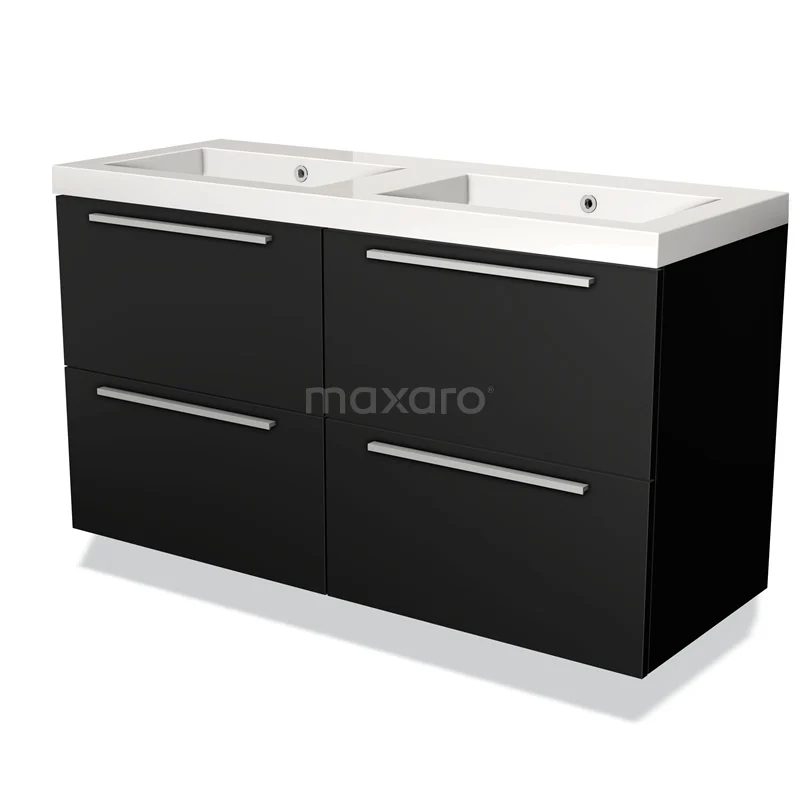 Modulo Waschtische | 120 cm Matt Schwarz Flach front Mineralguss 4 Schubladen