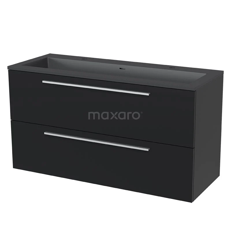 Modulo Waschtische | 120 cm Matt Schwarz Flach front Quarz 2 übereinanderliegende Schubladen