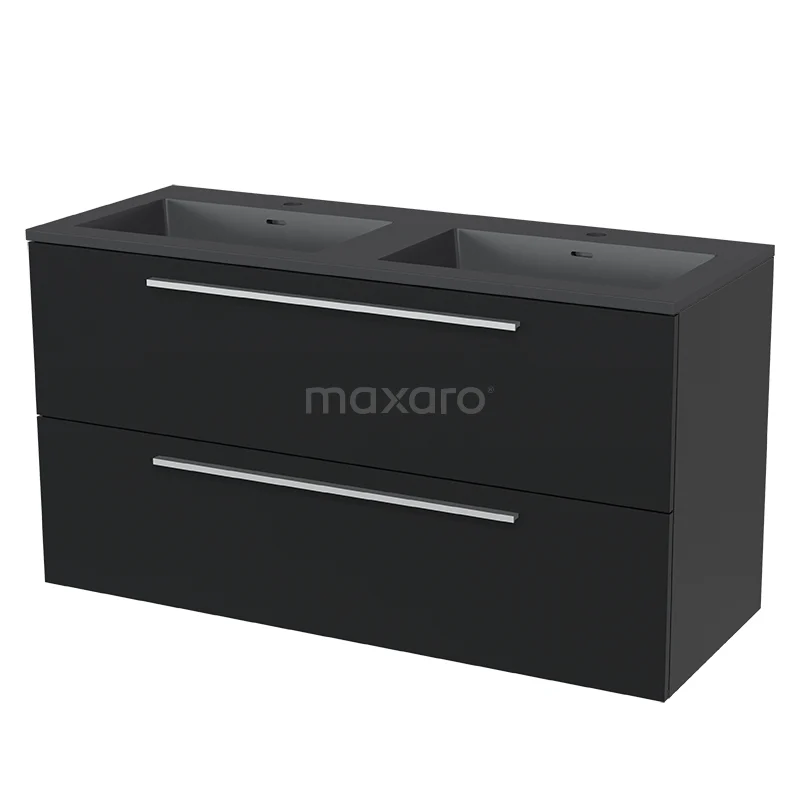 Modulo Waschtische | 120 cm Matt Schwarz Flach front Quarz 2 übereinanderliegende Schubladen