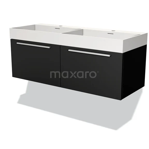 Modulo Waschtische | 120 cm Matt Schwarz Flach front Solid Surface 2 nebeneinanderliegende Schubladen