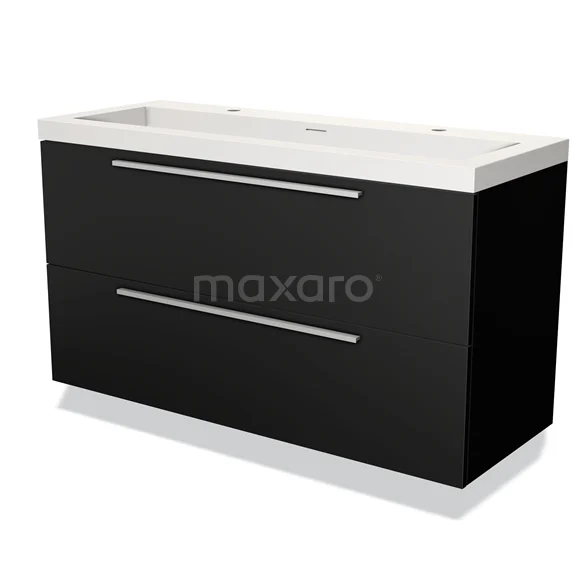 Modulo Waschtische | 120 cm Matt Schwarz Flach front Solid Surface 2 übereinanderliegende Schubladen