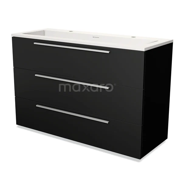 Modulo Waschtische | 120 cm Matt Schwarz Flach front Solid Surface 3 Schubladen