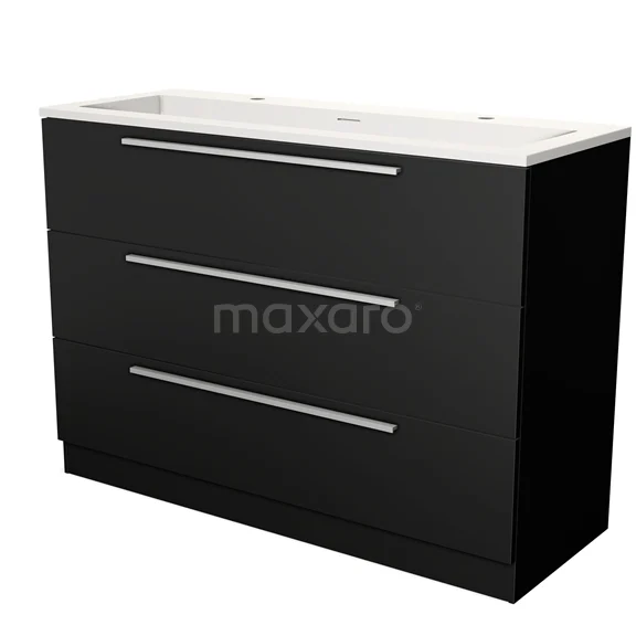 Modulo Waschtische | 120 cm Matt Schwarz Flach front Solid Surface 3 stehende Schubladen