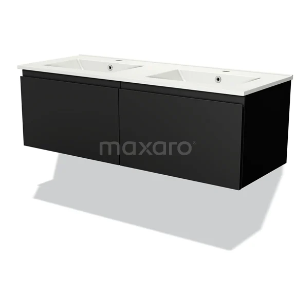 Modulo Waschtische | 120 cm Matt Schwarz Grifflos front Keramik 2 nebeneinanderliegende Schubladen