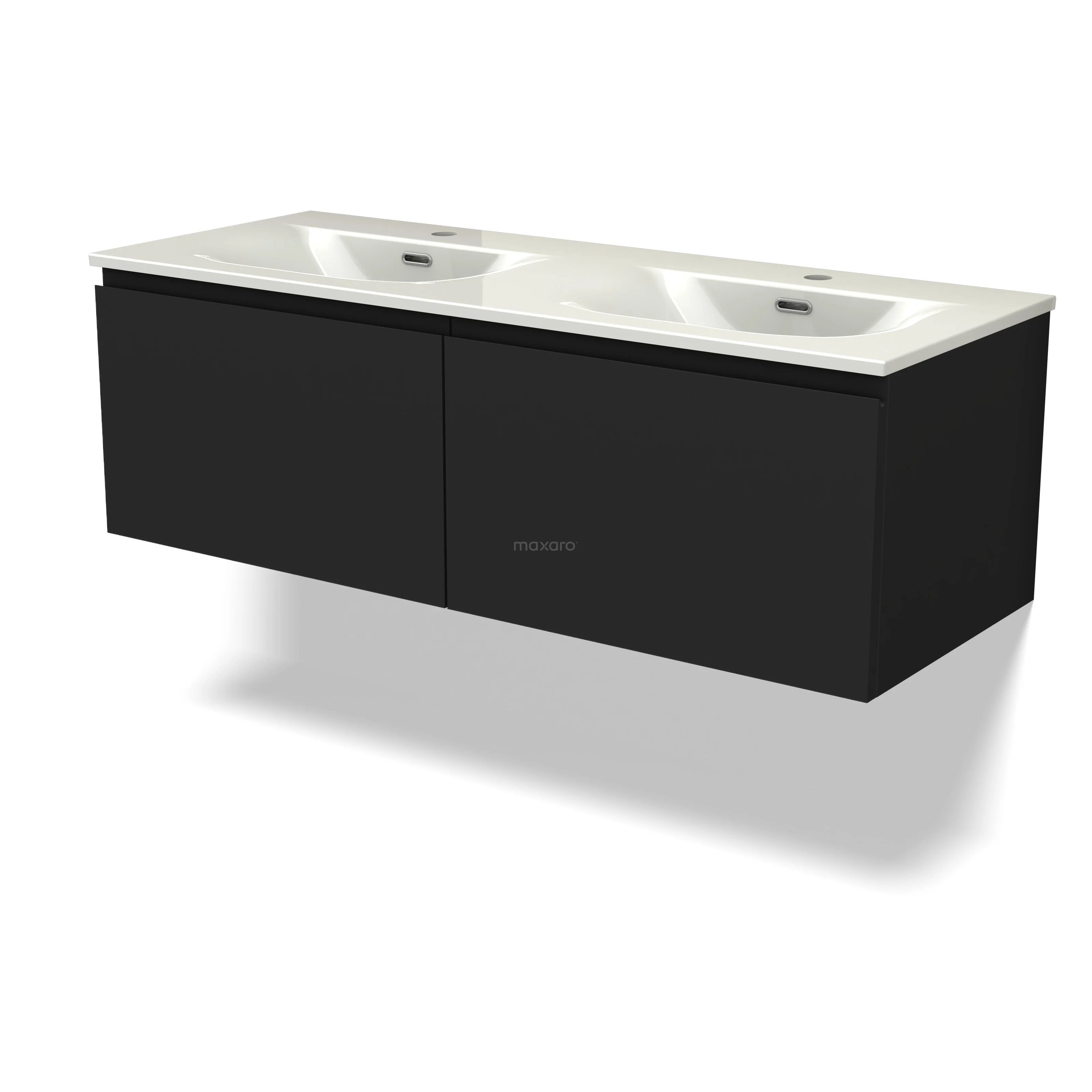 Modulo Waschtische | 120 cm Matt Schwarz Grifflos front Keramik 2 nebeneinanderliegende Schubladen