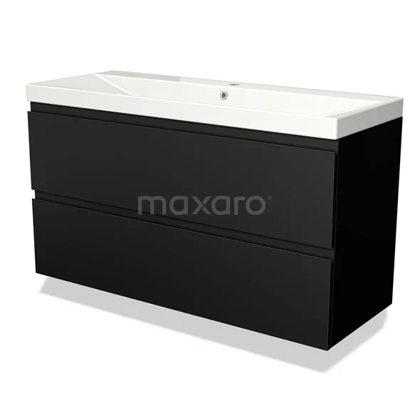 Modulo Waschtische | 120 cm Matt Schwarz Grifflos front Keramik 2 übereinanderliegende Schubladen