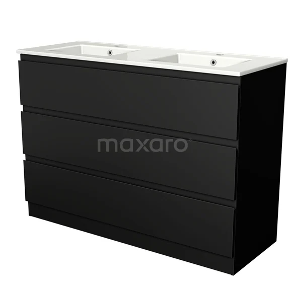 Modulo Waschtische | 120 cm Matt Schwarz Grifflos front Keramik 3 stehende Schubladen