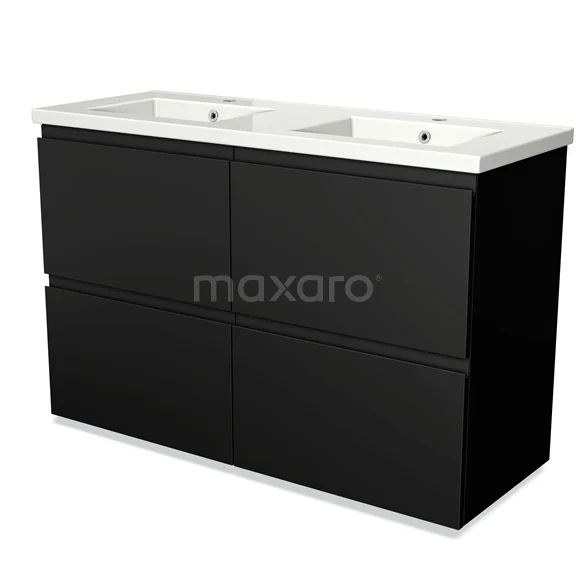 Modulo Waschtische | 120 cm Matt Schwarz Grifflos front Keramik 4 hohe Schubladen