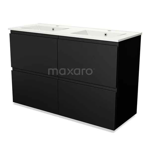 Modulo Waschtische | 120 cm Matt Schwarz Grifflos front Keramik 4 hohe Schubladen