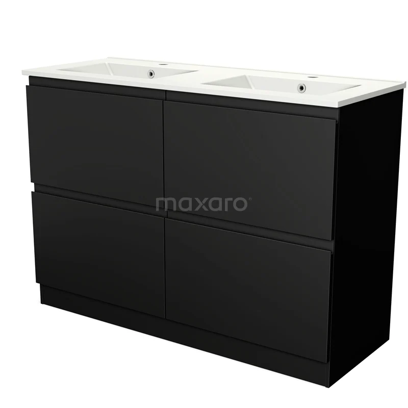 Modulo Waschtische | 120 cm Matt Schwarz Grifflos front Keramik 4 hohe Schubladen stehend