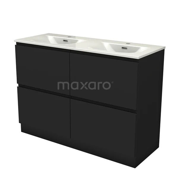 Modulo Waschtische | 120 cm Matt Schwarz Grifflos front Keramik 4 hohe Schubladen stehend