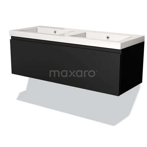 Modulo Waschtische | 120 cm Matt Schwarz Grifflos front Mineralguss 1 Schublade