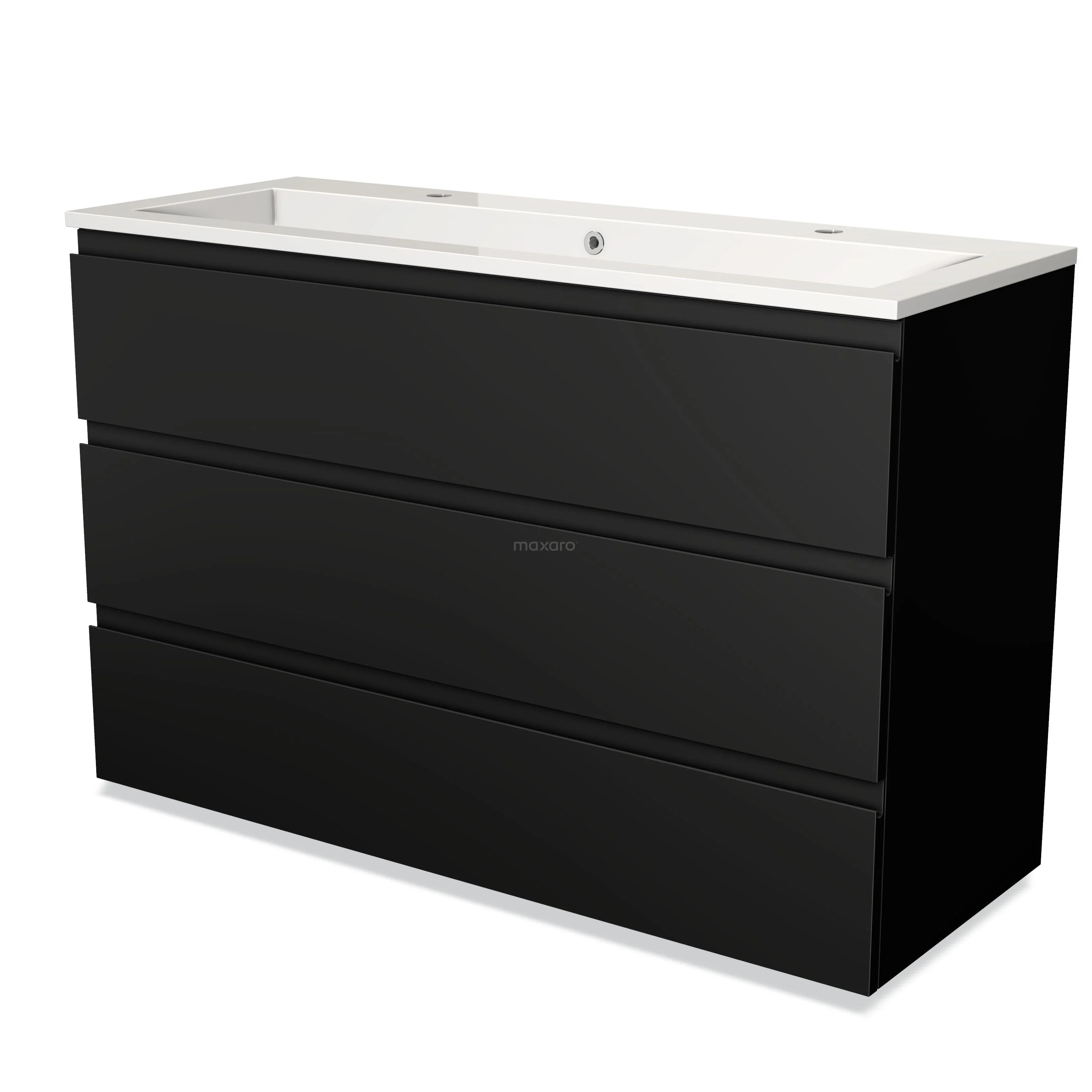 Modulo Waschtische | 120 cm Matt Schwarz Grifflos front Mineralguss 3 Schubladen