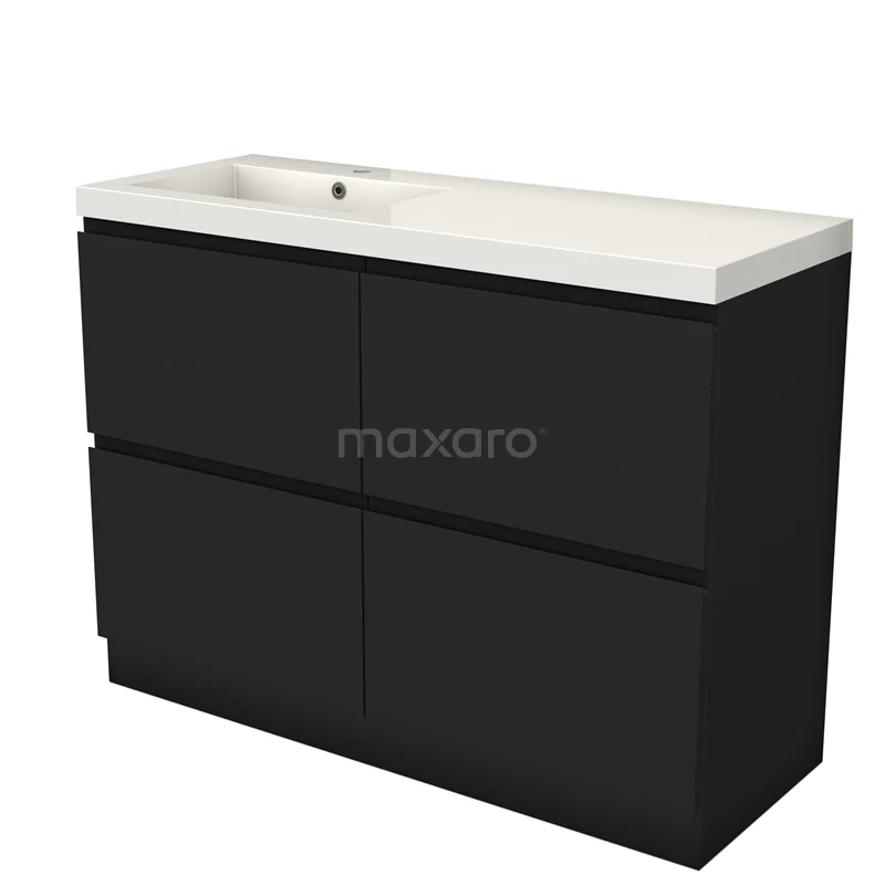 Modulo Waschtische | 120 cm Matt Schwarz Grifflos front Mineralguss 4 hohe Schubladen stehend