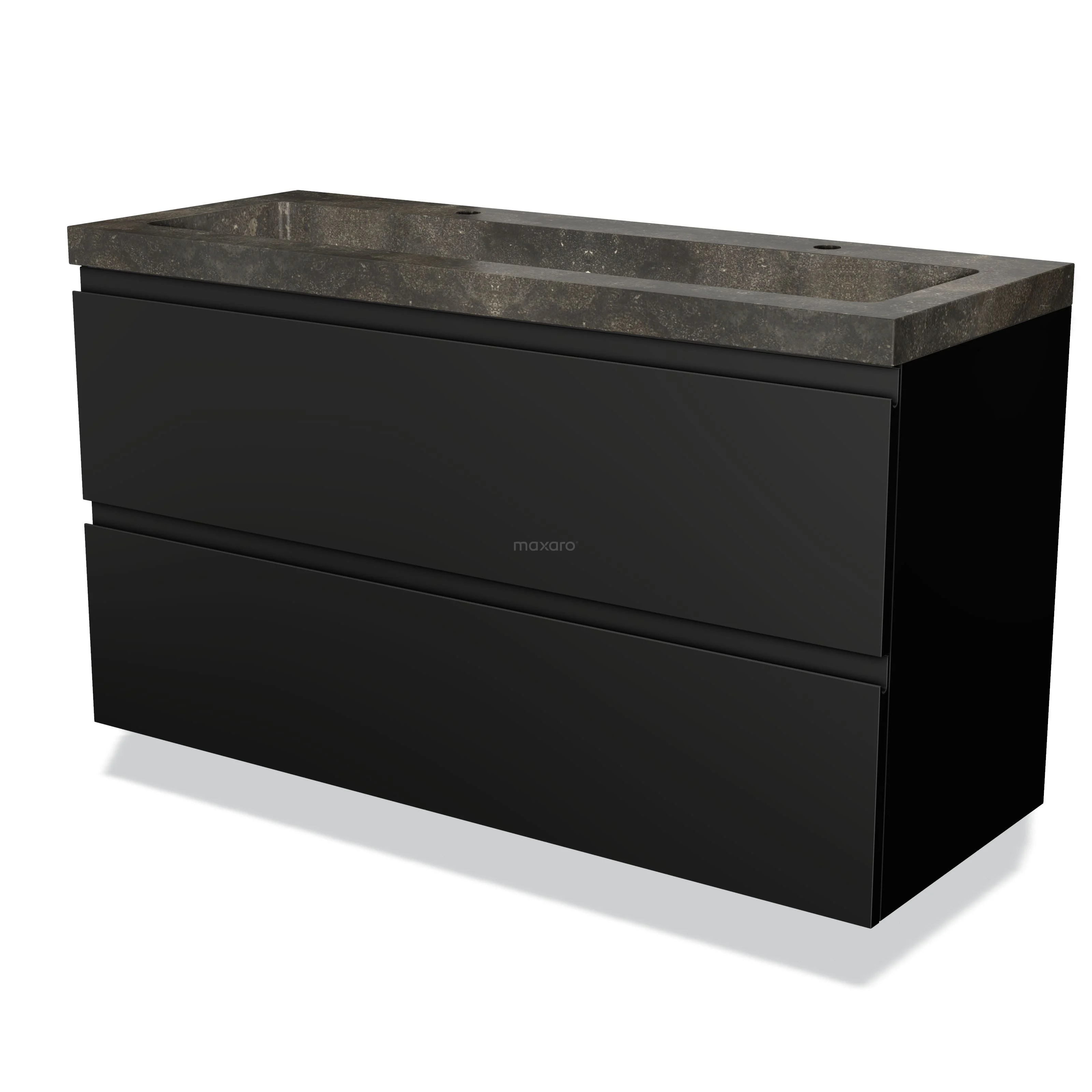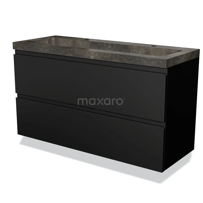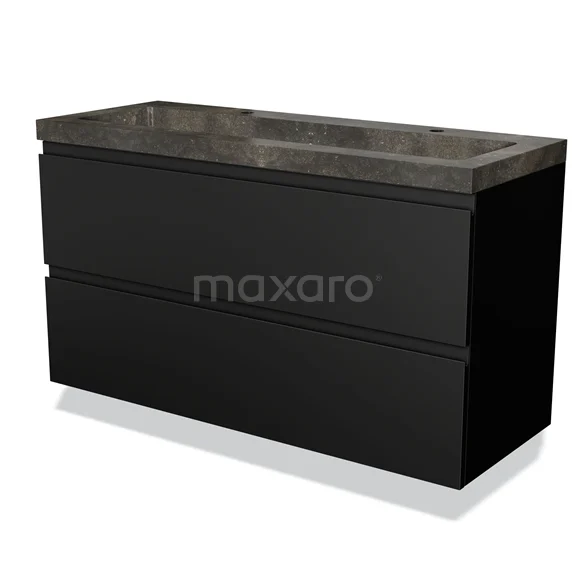 Modulo Waschtische | 120 cm Matt Schwarz Grifflos front Naturstein 2 übereinanderliegende Schubladen