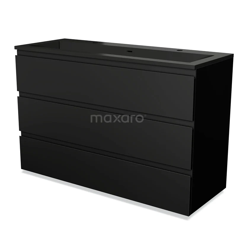 Modulo Waschtische | 120 cm Matt Schwarz Grifflos front Quarz 3 Schubladen