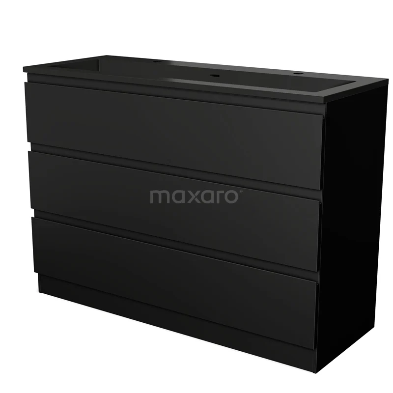 Modulo Waschtische | 120 cm Matt Schwarz Grifflos front Quarz 3 stehende Schubladen