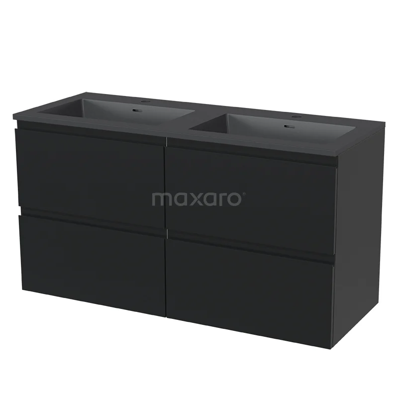 Modulo Waschtische | 120 cm Matt Schwarz Grifflos front Quarz 4 Schubladen