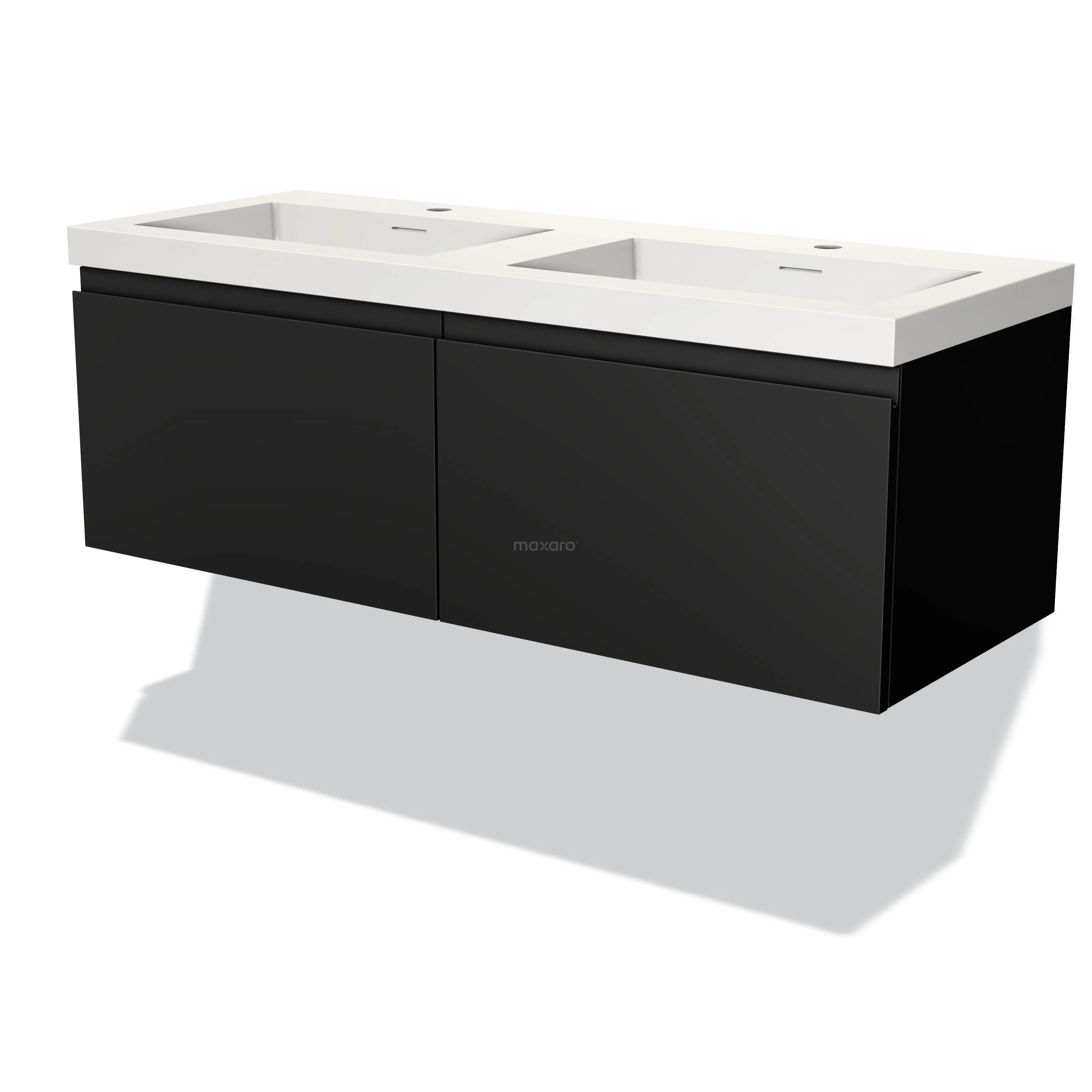 Modulo Waschtische | 120 cm Matt Schwarz Grifflos front Solid Surface 2 nebeneinanderliegende Schubladen