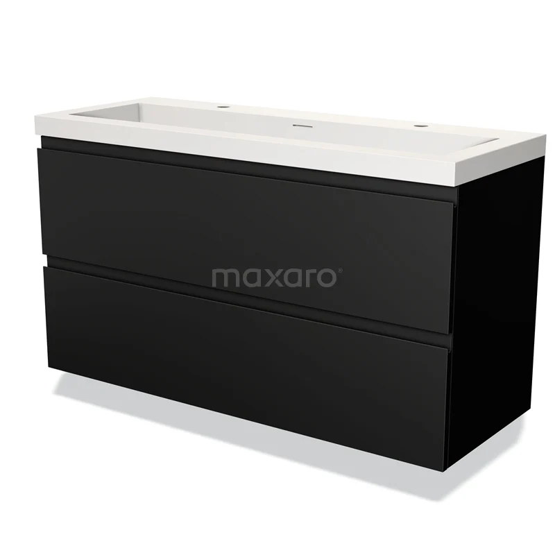 Modulo Waschtische | 120 cm Matt Schwarz Grifflos front Solid Surface 2 übereinanderliegende Schubladen